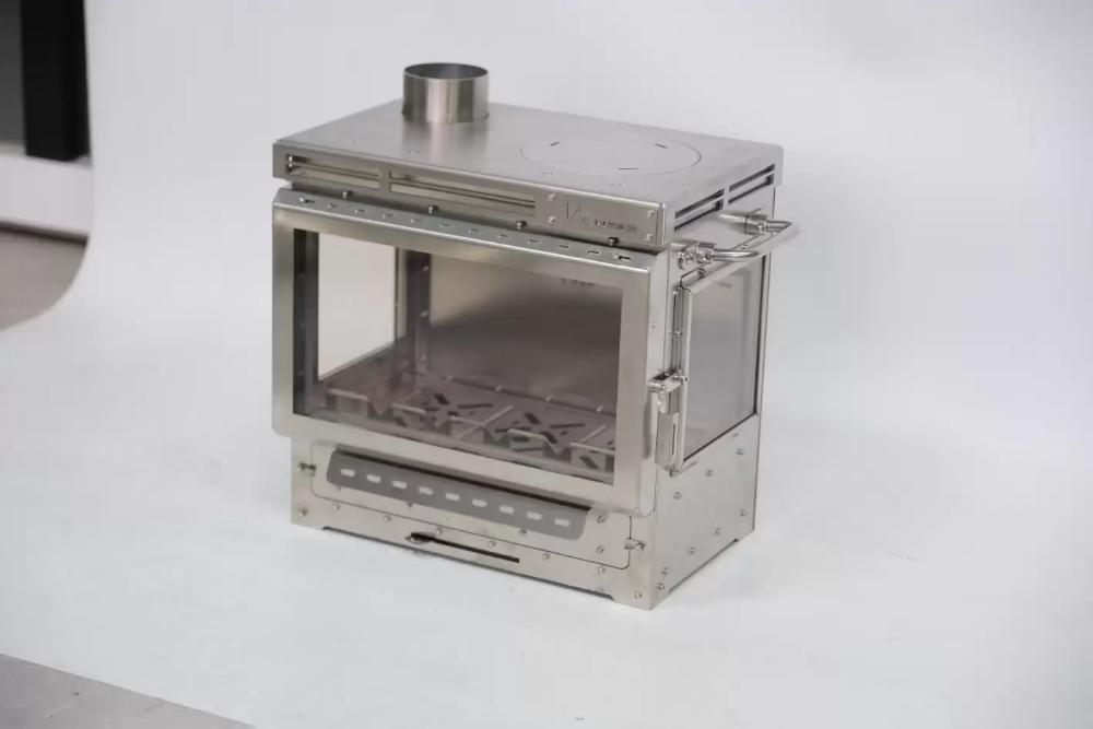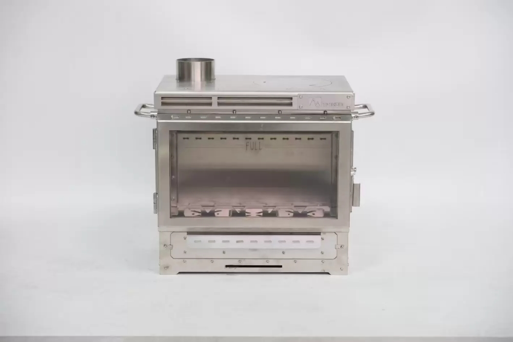 3 pieces of microcrystalline ceramic glass (temperature resistance of 1200°C) surround the furnace body, frameless snap design achieves a 280° field of fire viewing, anti-reflection film on the surface, and the combustion state can still be clearly observed under strong light;